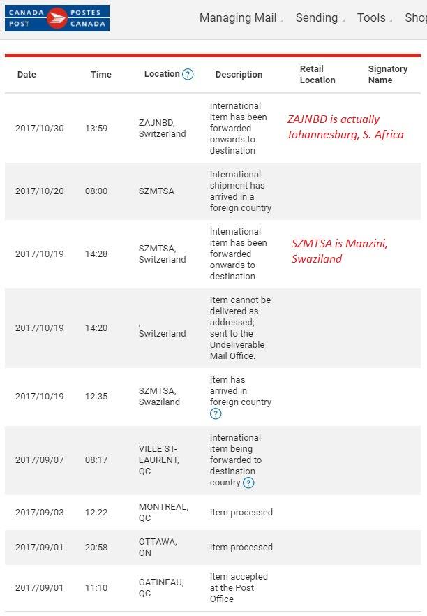 Canada Post Sent Our Parcel To Swaziland Instead Of Switzerland